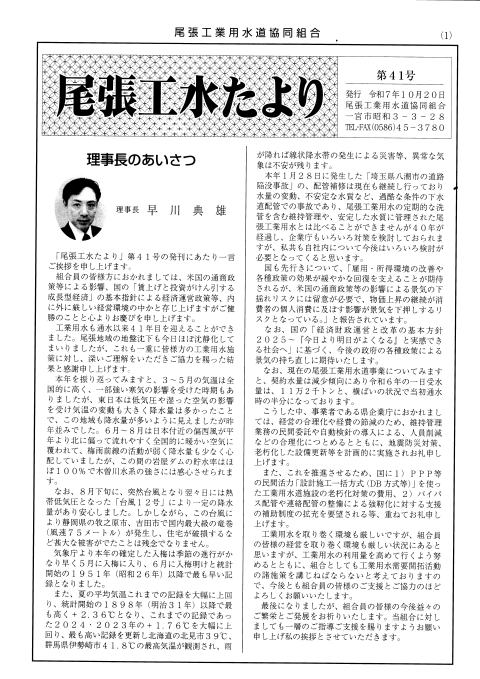 | 尾張工水たより第41号 一面 大きな画像へ | コラム(たよりp8) 大きな画像へ | |